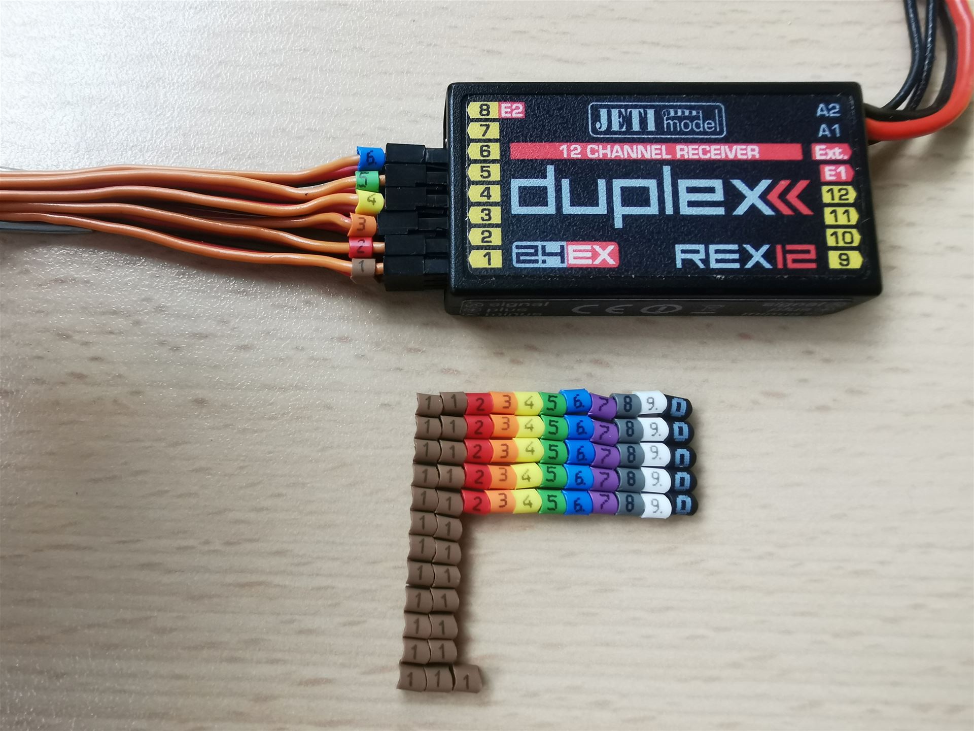 Ordnung und Übersicht sind in den komplexen Funktionsmodellen extrem wichtig. Dazu gehört auch die Beschriftung der Servokabel am Empfänger. Egal aus welchem Grund Du die Servokabel aus dem Empfänger ziehst, es ist immer schön zu wissen welches Kabel in welchen Anschluss gehört. Wir haben schon viel gesehen, von mit Stiften "beschrifteten" Servokabel oder Stecker, über Klebebänder bis hin zu viel zu großen Beschriftungsringen. Wir haben nun für uns die perfekte Lösung gefunden und möchten diese mit dir teilen. Unsere Servokabelbeschriftung ist super kompakt und wird nur über eine der 3 Servokabel montiert. Dazu hebst du die Verriegelung des Pins an, ziehst den kleinen Steckkontakt heraus, steckst unsere Servokabel Beschriftung über das Kabel und steckst den Kontakt zurück in den Servostecker. Das Ergebnis ist ein dauerhaft sauber beschriftetes Servokabel dessen Beschriftung sich kaum verschiebt, fast keinen Platz benötigt. Wir sind davon überzeugt, lass auch Du Dich davon begeistern!