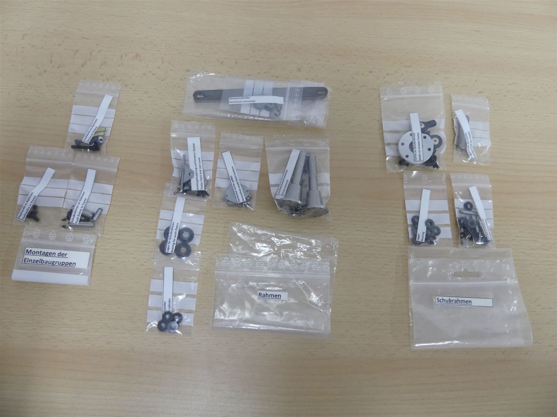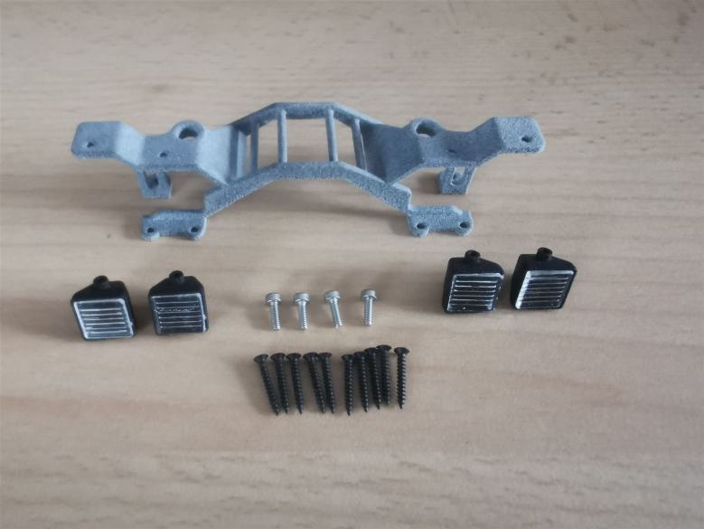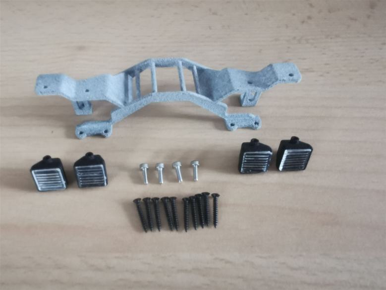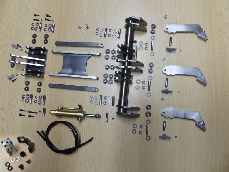 Im Lieferumfang enthalten, sind alle zum Bau erforderlichen Komponenten (Hydraulik, Antriebe usw. siehe Galerie Bausatzinhalt), Bausatz ohne Heckaufreißer