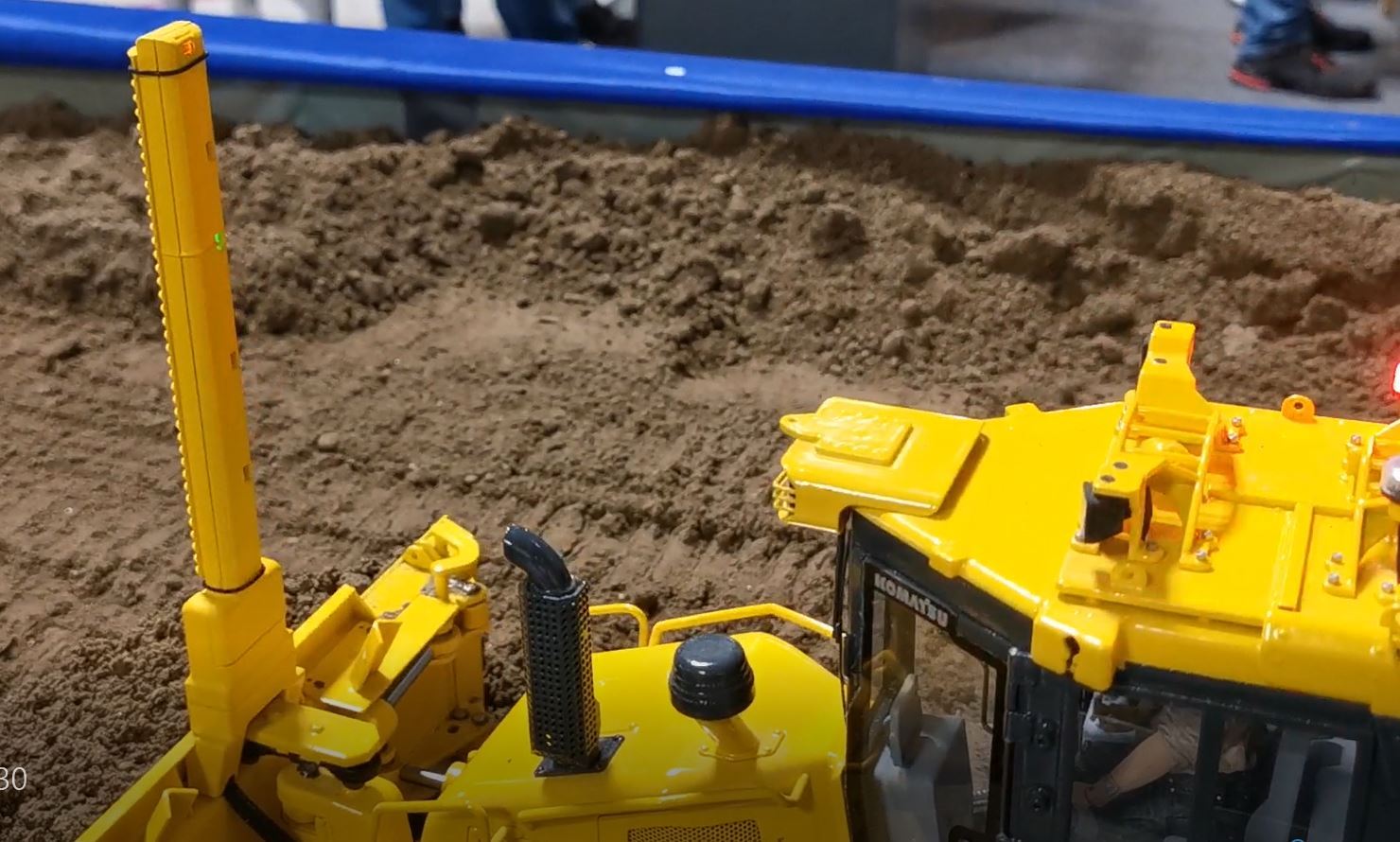 Über das Signal eines gewöhnlichen Rotationslasers (nicht im Lieferumfang enthalten) können damit absolut ebene Flächen planiert werden. Die Technik der original Maschinen nun im Modellbaumaßstab.