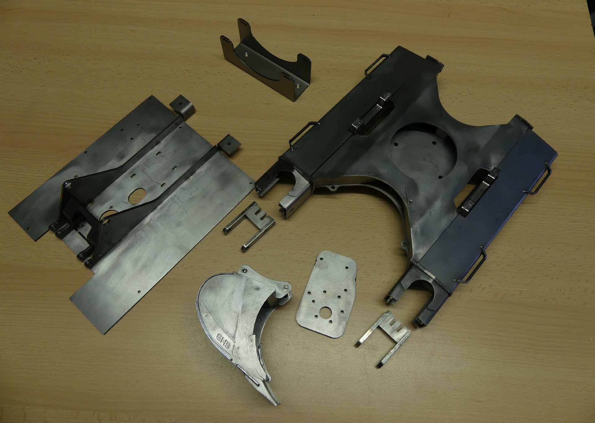 Was diesen Bausatz FUMOTEC-typisch auszeichnet, ist die massive Bauweise des Unterwagens aus geschweißten Stahlteilen. Somit ist ein idealer Schwerpunkt bei maximaler Grableistung sichergestellt. Die Konstruktion basiert dabei komplett auf den Zeichnungen und Unterlagen des Originals.