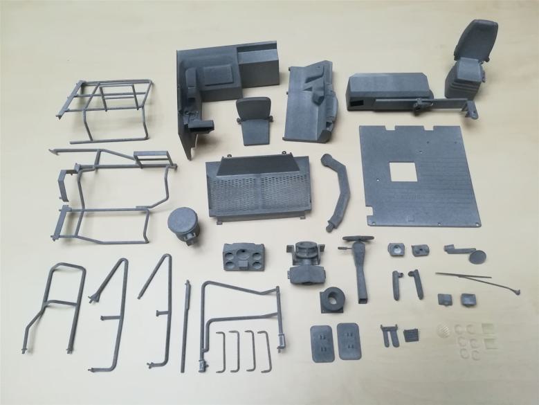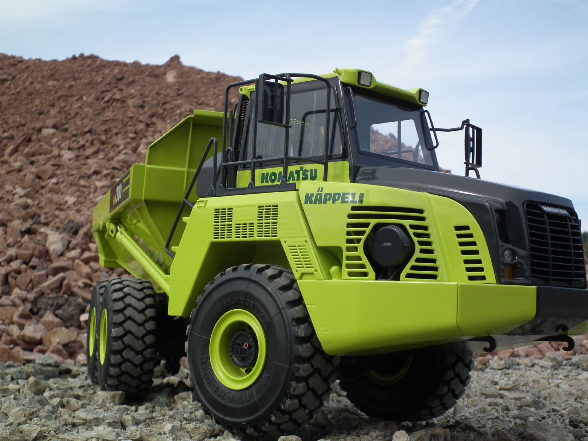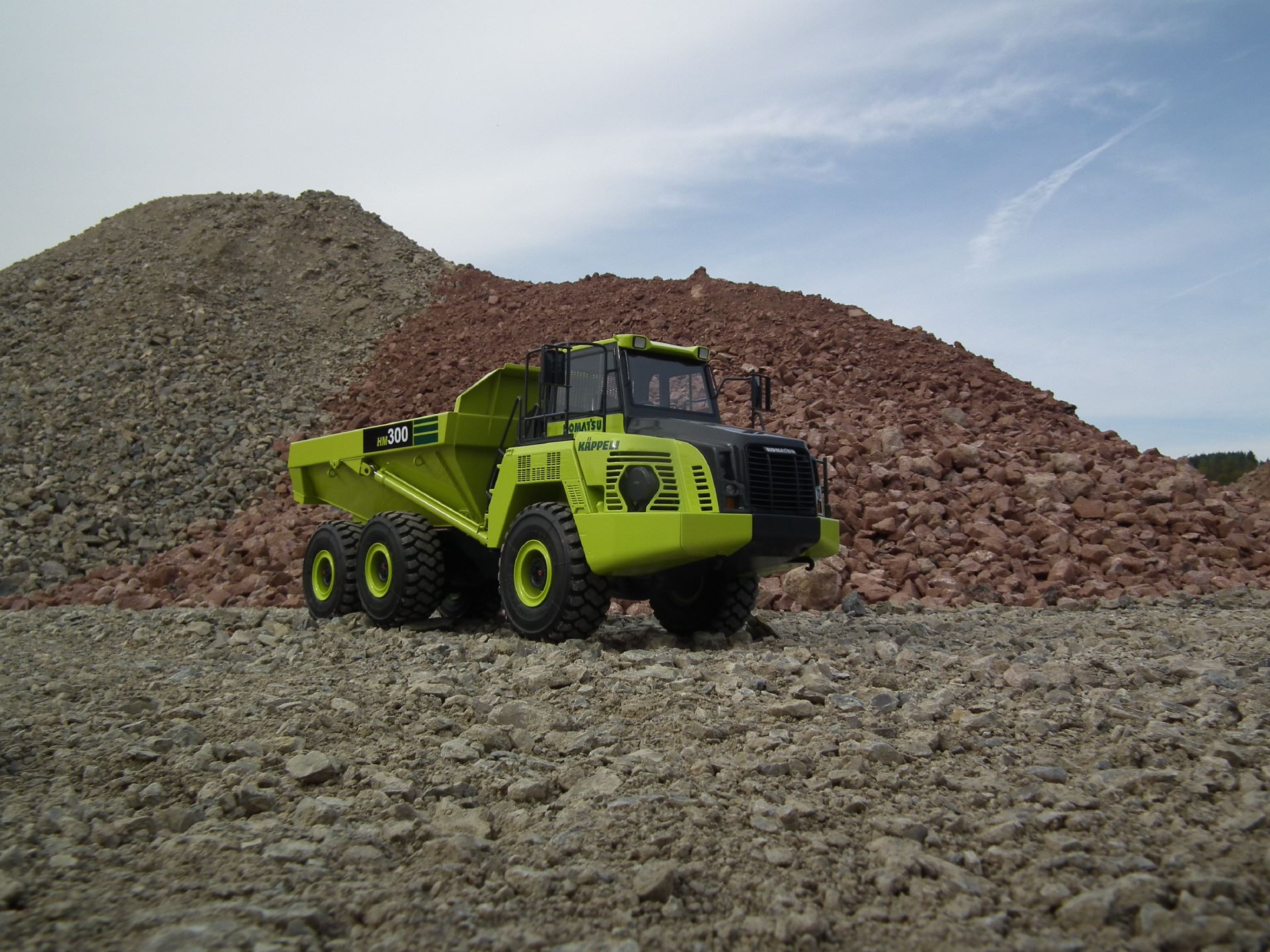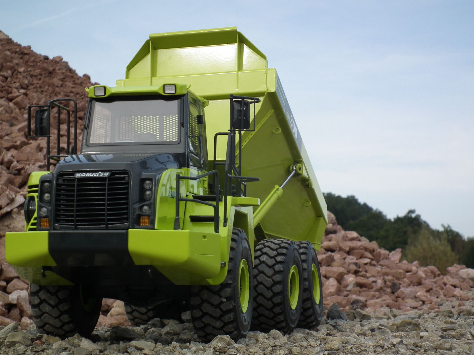 Der HM300-5 mit den Powerdrive-Achsen. Unser hauseigener Antrieb mit Brushlessmotoren an den Radnaben. Der Modellbausatz wird inkl. Hydraulikkomponenten, Antriebsmotoren, Rahmenteilen aus Stahl, Verkleidungsteilen aus GFK und 3D-Druckteilen geliefert.
